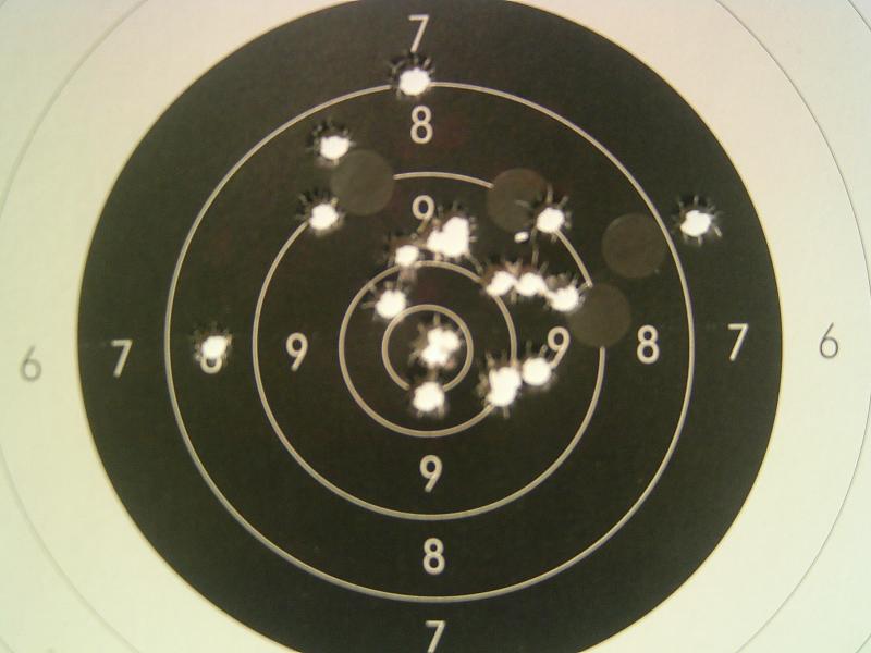 No tiro bien (pero eso era más por mala sujección del arma) pero ya no se sale ninguno del negro.