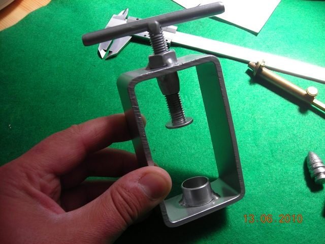 Os pongo unas fotos de una prensa casera que me he hecho para "retacar" los cartuchos metálicos del Sharps aunque serviría para otro tipo...