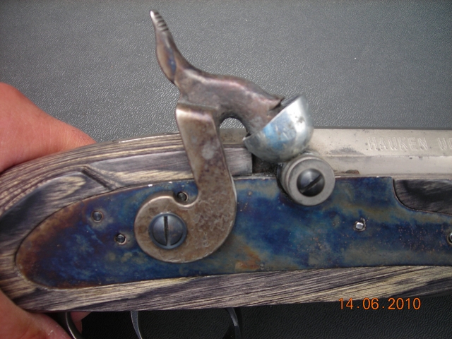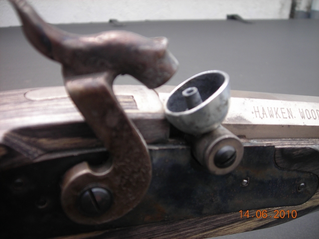 Es sencillo de hacer, pero cuando cortes la botellita tienes que darle el corte un poco inclinado para que cuando este atornillada el borde que mira hacia el tirador te quede más bajo que el otro porque sinó te pegará el martillo en el parachispas antes que en la chimenea, te pongo unas fotos del mío...
