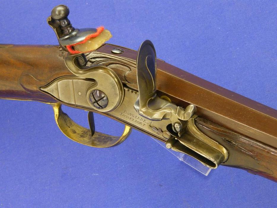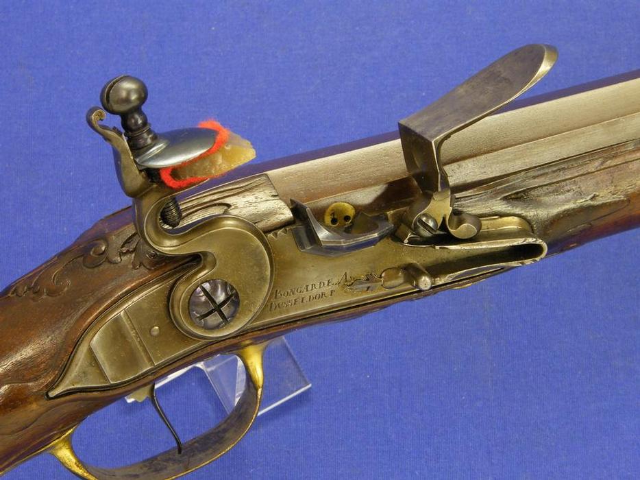 A very nice German Flintlock Rifle by BONGARDE A DUSSELDORP, about 1730, caliber 17 mm, length 145 cm, in mint condition