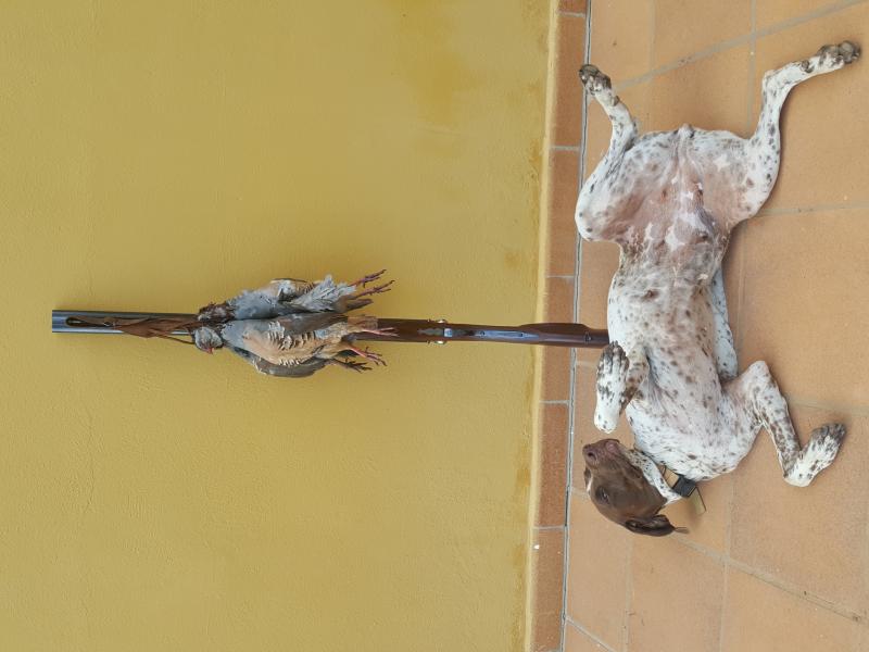 Hoy una maravilla tres perdices paradas por la perrita con tiempo suficiente para llegar, colocarte en buen lugar para la salida y un disparo certero, las tres bajaron con la.............