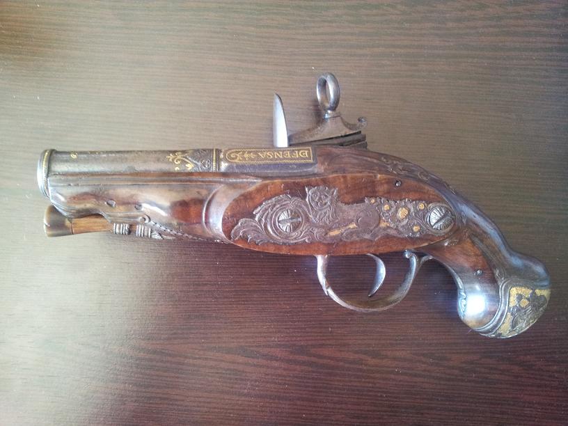 La llave por algunos detalles tampoco me parece catalana, a pesar del apellido del llavero. La caja, con el labrado de la madera y los motivos decorativos, me hace pensar más en un arma de hacia 1800 o posterior, fabricada posiblemente en el País Vasco.