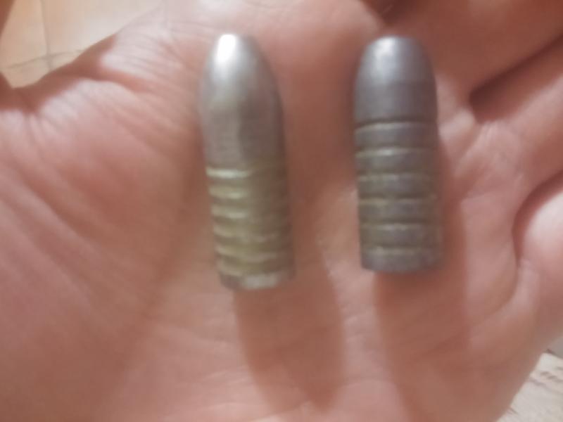 Aqui va la foto de los dos proyectiles Pedersoli de 535 grains. Ahora si se compra la turquesa de Pedersoli viene con las seis bandas y la antigua era la de siete bandas.