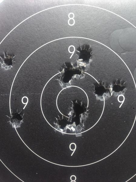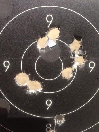 Los dos disparos a la izquierda los he leído perfectamente y lo que más me ha gustado ha sido que he sabido bajar el grupo de dieces alto a otro mas centrado.