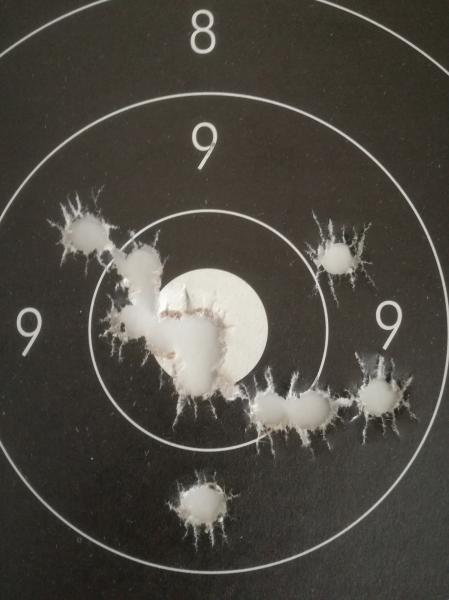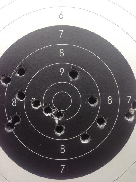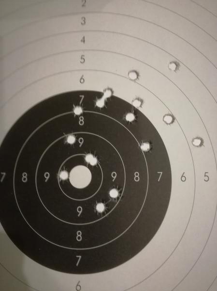 Voy a comentar la diana a cien metros de esta mañana no por que sea buena , pues no tendria nada que comentar, si no por un asunto muy hablado como es la limpieza. A sido descarado. He empezado con dos nueves i un diez, i luego el ocho de la derecha que lo he visto al disparar, para mi el unico tiro que he tirado mal. Otro nueve i a partir de ahi el cachondeo, un tiro al 7-6 a las cuatro i otro al 7 a las once. Hoy en vez de agua jabonosa he usado limpiaparabrisas del cohe para humedecer los trozos de bayeta. Me he imaginado que era suciedad i me esmerado mas en la limpieza del proximo tiro que a vuelto al nueve, i los dos proximos he limpiado como antes, una pasada con cada cara de la bayeta i se han vuelto a ir, al 7 i 6 a las diez. Viendo claro que era un problema de suciedad, que el limpiaparabrisas sin rebajar no me estaba funcionando los ultimos tres proyectiles he practicado limpieza mas profunda, una bayeta con limpiaparabrisas por las dos caras (pues no tenia nada mas) i dos bayetas mas secas por las dos caras. El primero de los tres tiros se ha ido arriba al cinco pero me he dado cuenta que no habia puesto el diopter en su posicion original pues como tiro con 70 gn se va para adelante con el retroceso, tiro bien centrado pero alto, los otros dos disparos con el mismo proceso dos nueves. Como conclusion que una buena limpieza es primordial entre tiros i que el limpiaparabrisas me ha dado mal resultado con diferencia comparado con el agua jabonosa utilizando el mismo proceso.