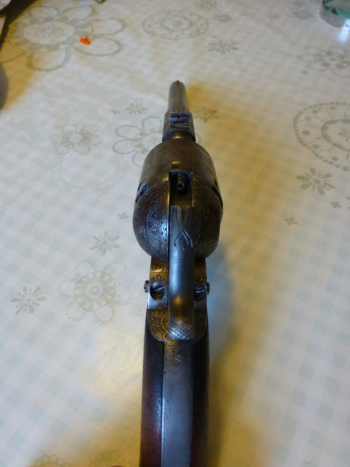 Hola buenas nuevas fotos del revolver, antes de nada decir que su propietario es una persona seria y no quiere hacer pasar una cosa por otra, simplemente tiene esta pieza y la quiere vender a su precio justo y justo es lo que uno esta dispuesto a pagar en este mundo del coleccionismo, a mi en concreto me llena la pieza pero si no es original sera otro precio por supuesto,
