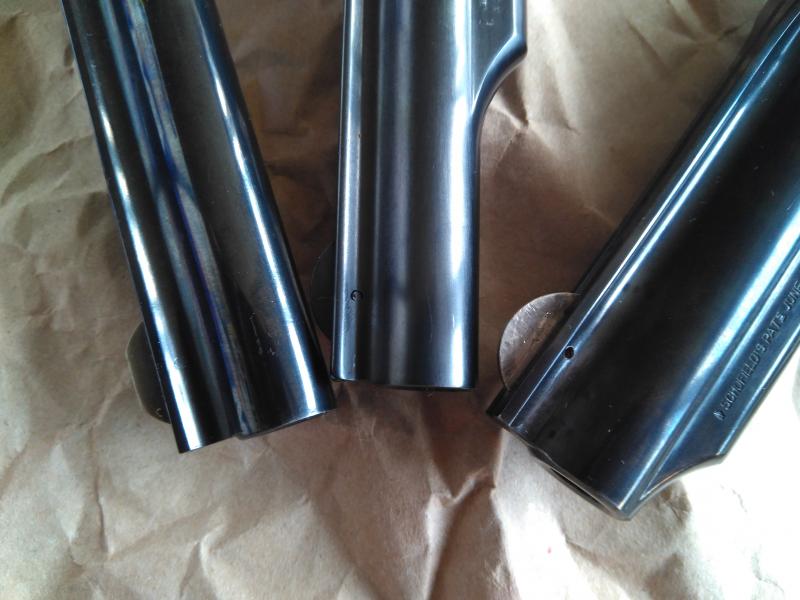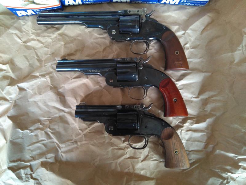 un bodegon, arriba un uberti de 7", al centro un armi san marco de 5", abajo el uberti recortado a 3,5"