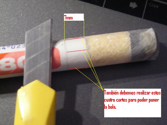 Lo ponemos todo en el rotulador cortamos a unos 7mm retiramos el cartucho ponemos la bola y pegamos.