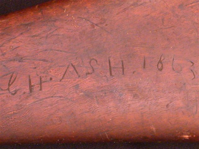 Por ejemplo este arma, pertenecio a una persona identificada como Charles H. Ash, de Lexington, pues fue el unico con el que coincidian las iniciales,tanto del Norte como del Sur y que participo en la guerra en 1.863, concretamente en el 2º de Caballeria de Kentucky.