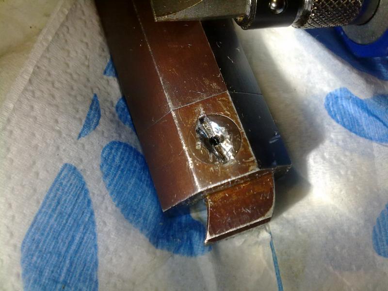 Bueno pues ahora la he cagado de verdad, el saca tornillos mas fino estaba defectuoso y se partió antes de empezar... luego taladré y metí el siguiente sacatornillos con este resultado. Lo hice bien , a nivel, despacio, pero nada se partió como plastilina....