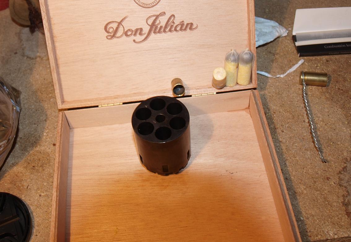 Buenas tardes: Ayer disparé unas cuantas series de revolver con cartuchos de papel. Los saqué de las recámaras y vi que el problema estaba en los culotes de los cartuchos. Si tienen demasiado pegamento, no se encienden. Quizá, pinchándolos al cargar sean mas seguros. De lo que me quedé sorprendido es de la gran suciedad del cañón, yo lo achaco a que los tacos de los cartuchos los pongo sin engrasar, para que no pase al papel. Nunca vi el cañón tan sucio.