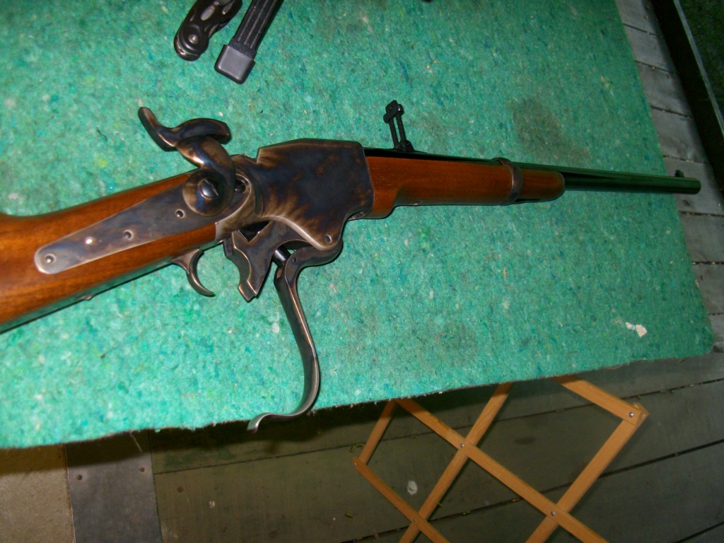 es una Armi Chiapa, y la cogí en 45 Long Colt. se fabrica también en 56-50 Spencer (pero no es rimfire como el original, es de percusión central), 44-40 y 35 Schofield.