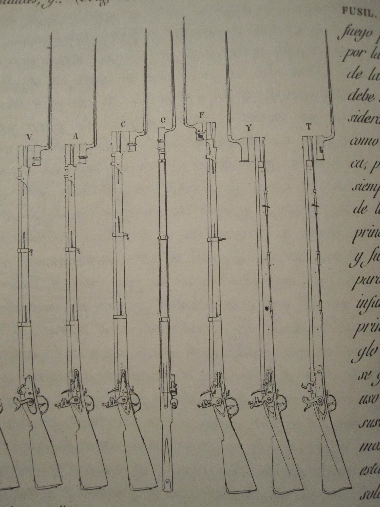 Hemos visto también, por los documentos de la época que la bala de calibre francés era “intercambiable” entre los tres fusiles, aun perdiendo precisión, lo que se podía paliar, en parte, envolviendo bien la bala en el papel del cartucho.