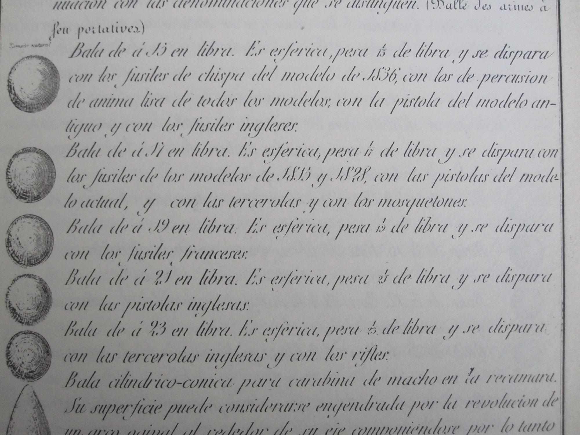 En este otro documento de 1852 vemos que aun se conservan en los almacenes fusiles de este calibre y se contemplan todavía los tres calibres. De todos modos, en la época de la percusión, cada vez se le daba más importancia a la precisión, avanzándose en los sistemas de estriado y toma de estrías. La bola en el fusil militar estaba a punto de pasar a ser historia.