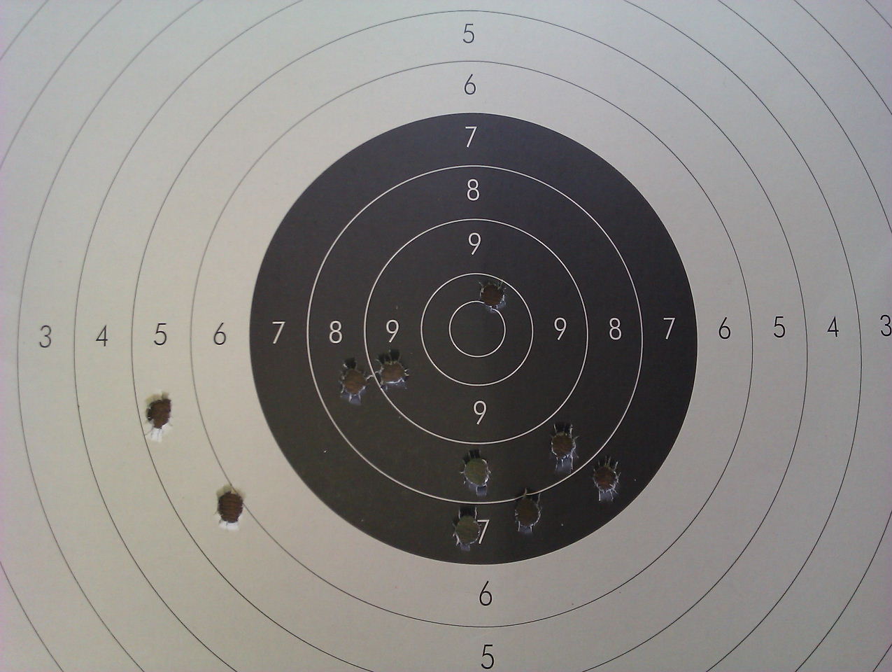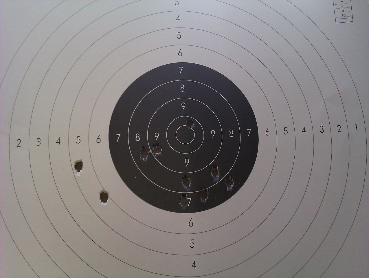 Hoy he vuelto a tirar, los dos tiros que están en el 5 y 6 han sido sin apoyo y sin las gafas adecuadas.