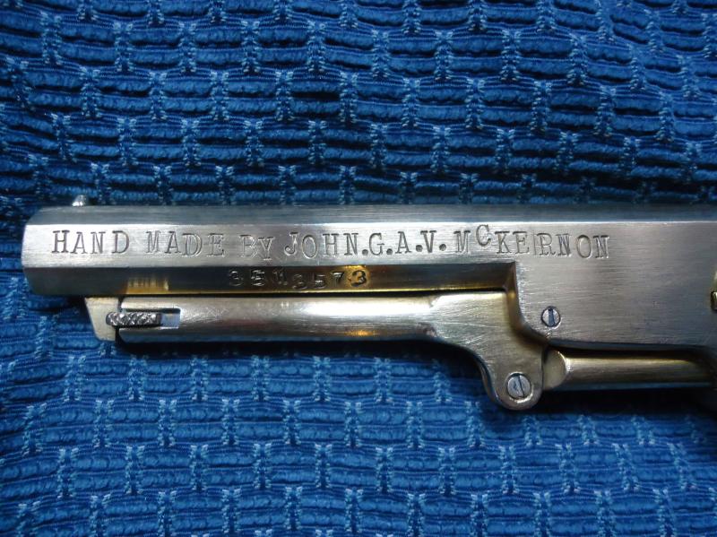 No soy experto pero en vista de lo enseñado creo que es un arma "decorativa" o poco mas, las letras son para ciegos y cuando se ponia la patente en la epoca se ponia el nº de la misma y ademas estaba en el cañon pues el cilindro no se consideraba una piesa fundamental y la estria del cañón desapareció?