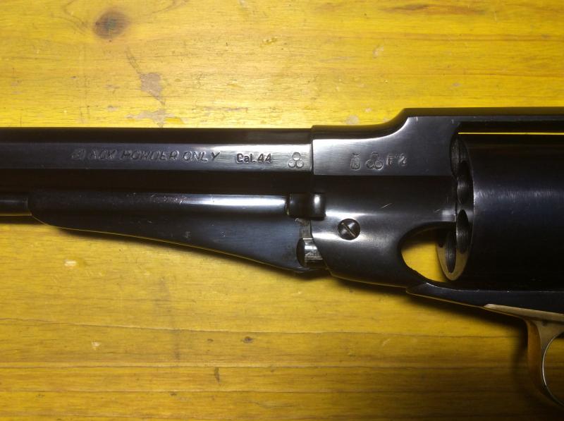 Parece ser de los primeros, ya que el nº de serie es un 16XX. No tiene la inscripción Black Powder Only, ni código del año de paso por el BOPE. Punzones de aceptación y prueba en armazón, y de prueba en cañón y tambor. Punzón con los tres círculos en triángulo sólo en tambor.