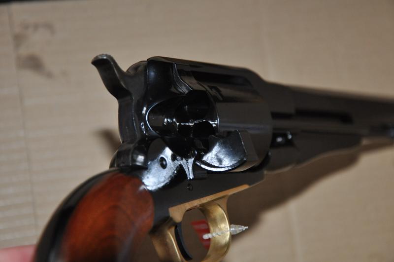 Repito por tanto, que los modelos conocidos como "black powder frame" como los modelos standard, son 100% válidos para polvoras modernas sin humo. Ya que la denominación "black powder frame o "armazón de pólvora negra", es una denominación acuñada por los coleccionistas de Colt para referirse a los revolveres que llevan el tornillo que retiene la guía del cilindro mediante un tornillo alojado en la parte inferior del armazón.