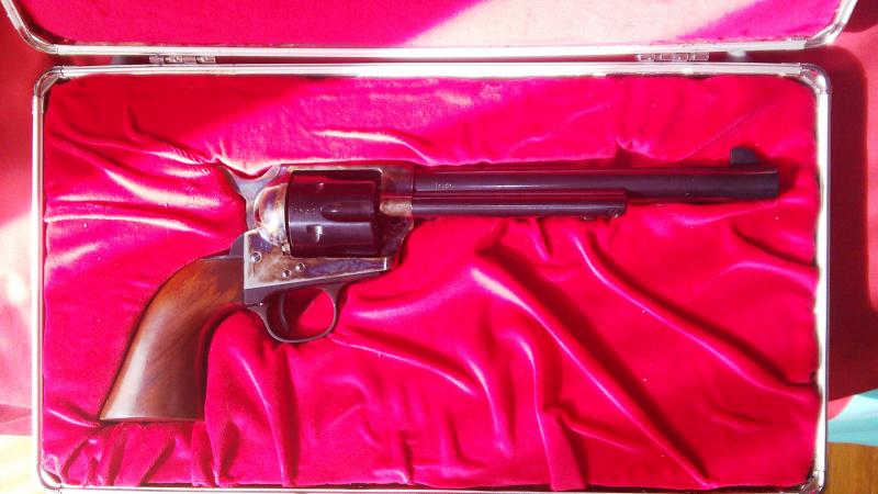 Hacia tiempo que venia observando este tema y fué gracias a el que me enteré de la posibilidad de guiar un arma de cartucho metalico en AE. Gracias a un forero ademas me enteré de donde conseguir el revolver que siempre había querido, un Colt SAA. Al final un Colt SAA original en cañon 4 3/4", 45.colt en acabado nickel es lo que he acabado comprando. Yo soy de la provincia de Alicante y por aquí las I.A. son confiables y estan por lo general bien informadas. Aquí os dejo una foto, aunque no de muy buena calidad ya que la camara no lo es tampoco.