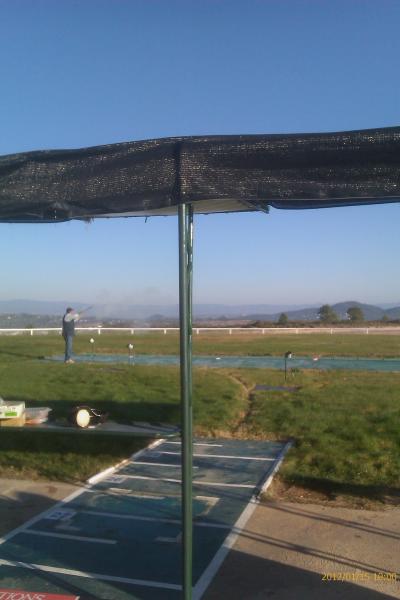 Si se amplía la foto, sobre los arbolitos de la derecha de la imagen está el plato hecho añicos. Eso da una idea de lo efectivas que pueden ser estas escopetas y eso que la chispa es puñetera.