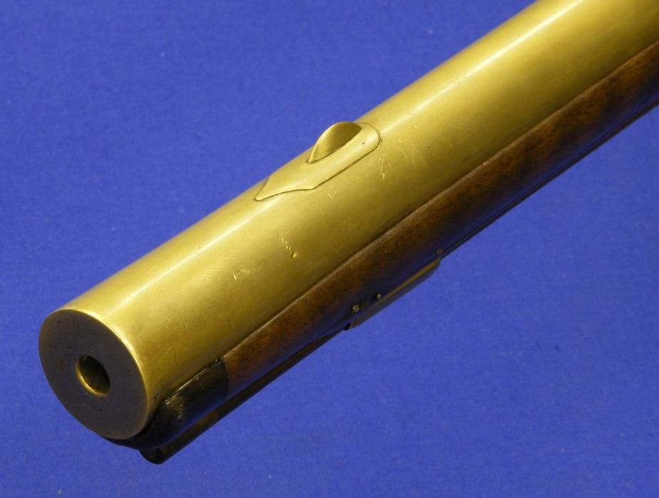 El cañon de bronce marcado con el aguila alemana,esta bellamente grabado, asi como la boca. (Es la boca de cañon mas bonita que he visto nunca) la placa de la llave tambien en bronce finamente grabada. La culata con figuras incrustadas en bronce y grabadas.