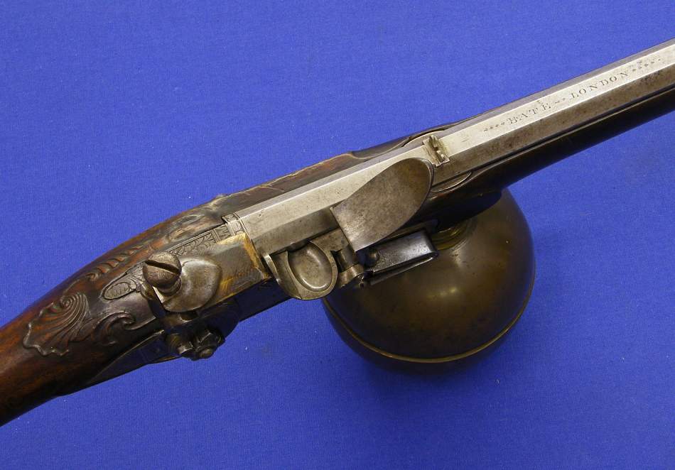 A very nice 18th century English "Flintlock" Sporting Air-Rifle, signed BATE LONDON (Edward Bate circa 1775), caliber 14 mm, length 133 cm, in perfect condition