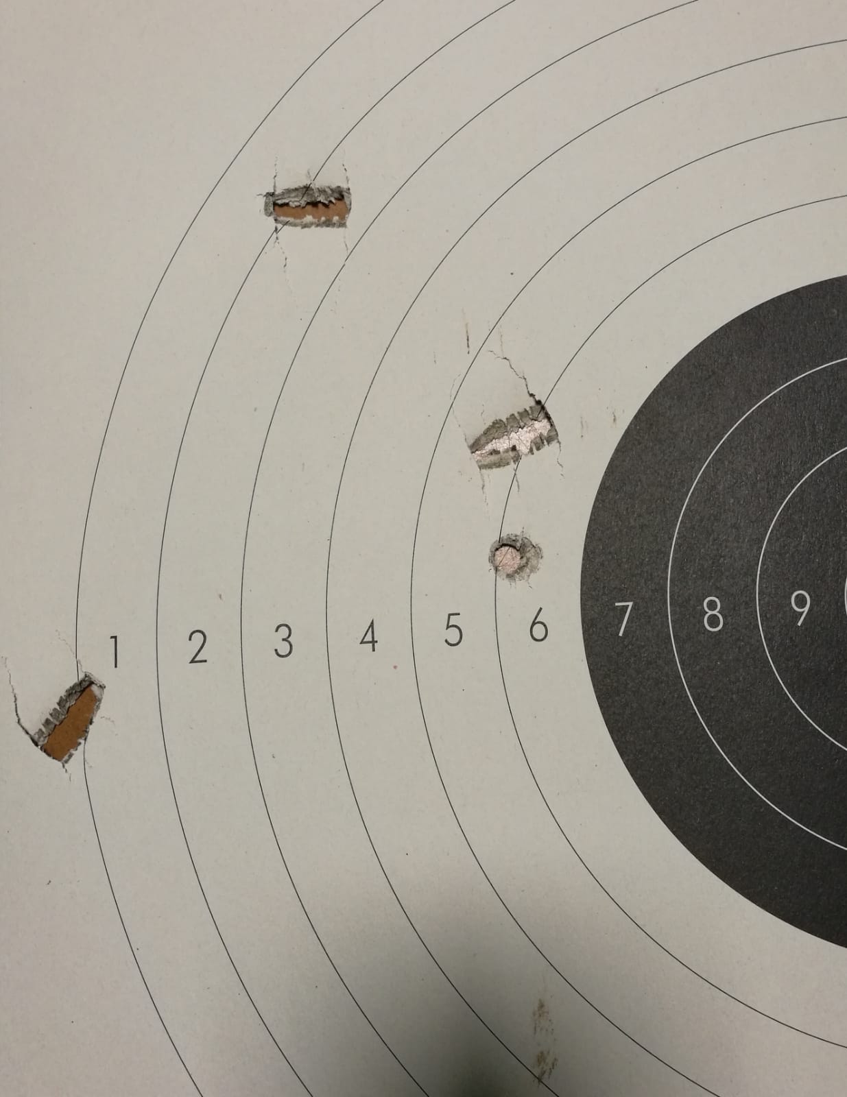He empezado bajo con buena agrupación y he subido el alza y "voila" han empezado a caer dieces y yo a emocionarme pensando que ya lo tenía hecho