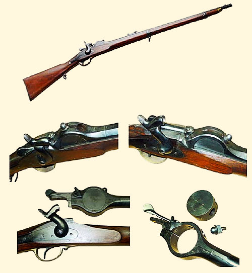 Creo que se cargaba por la culata, en uno de los agujeros los proyectiles y en el otro las cargas de polvora, pero desconozco mas datos del sistema. Sobre la base de este sistema, el inventor D. Cosme Garcia Saez diseño un sistema para una carabina de percusion, hacia 1860/62 pero tardaron tanto en hacer los primeros 500 rifles, (en concreto lo cierres que tuvieron que encargar en Belgica a J.Jaspar, que fue el que se retraso, por no haber en España la tecnologia necesaria) para las pruebas reales del ejercito que cuando los habian terminado el sistema de casquillo metalico le habia comido el mercado.