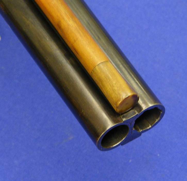 El cañon derecho es estriado y el cañon izquierdo es de anima lisa, con juego de disparador.
