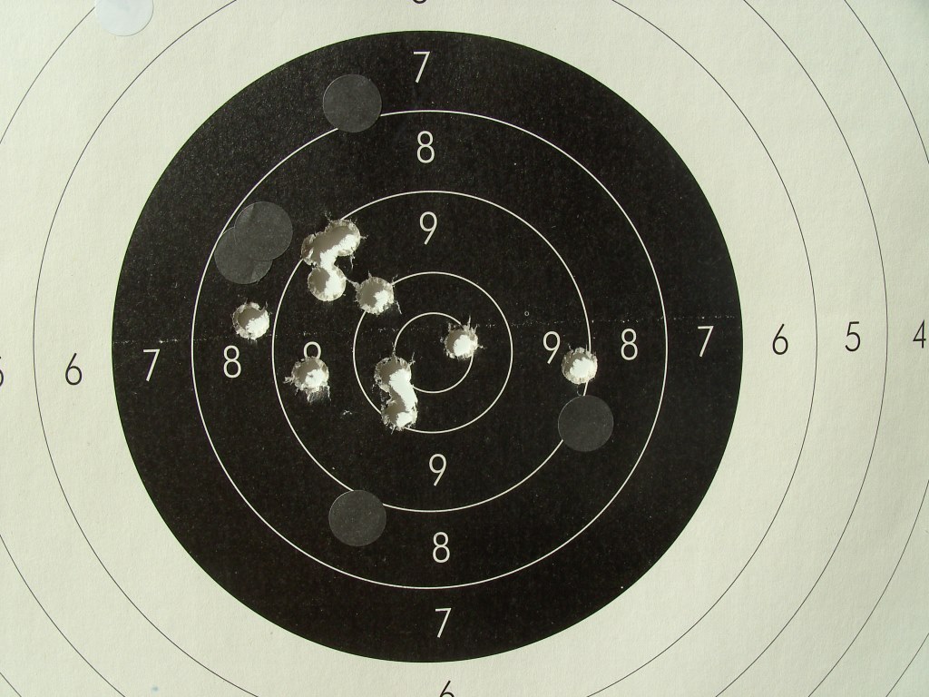 El penúltimo el 7 a las 9/10 (el error lo veo y es por causa de un "resbalón" de la culata sobre el hombro) y un severo tirón del gatillo.