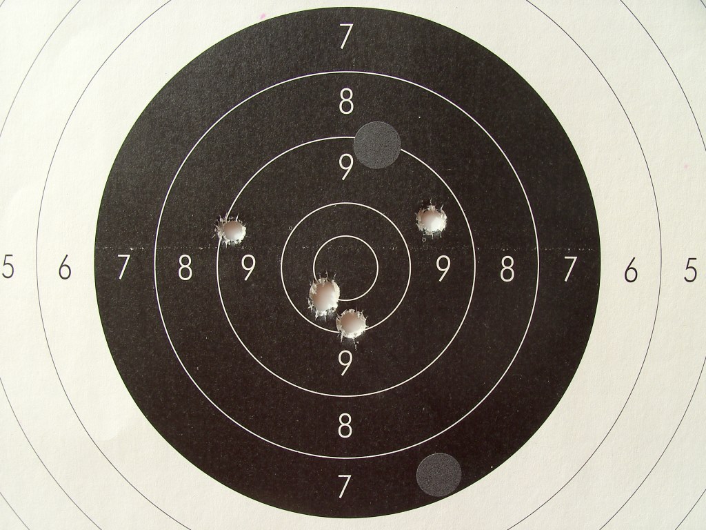 Debemos ser capaces de acertar donde está el impacto sea el disparo bueno o malo pues eso nos llevará a confirmar en el papel, la "foto finish" de como estaban las miras en el momento del disparo y si hemos notado gatillazo u otro movimiento incontrolado.
