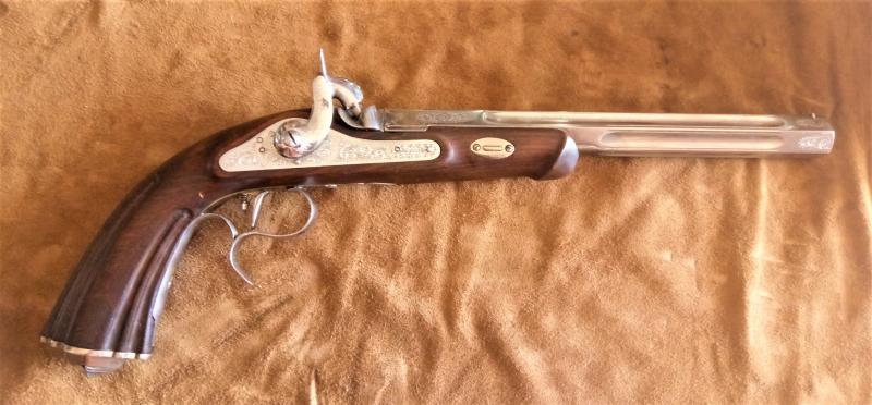 Yo tengo una APM como la tuya, bueno a decir verdad mi modelo es mas sencillo, el gatillo no es al pelo con lo que he tenido que ajustarlo yo y el acabado es pavón negro, por lo demás imagino que sera la misma arma. Cañón con micro estrías, yo he probado con munición del calibre 329 y 335, funcionando bien el arma con 12 grains de pólvora suiza y con calepinos de lino de diferente espesor. Como casi siempre y eso que es un arma muy sencilla y a mi entender lejos de la elite de las pistolas de kuchen supera en mucho al que suscribe haciendo muy bien su labor cuando eres capaz de pararla. Seguro que la disfrutas, yo he renunciado a tener algo mejor porque me satisface mucho trastearla y con armas de mas empaque no lo haría además para mi es muy bonita y ligera. Ojo al cargarla sin mantenerla en un apoyo porque ese guion delantero lo carga el diablo.