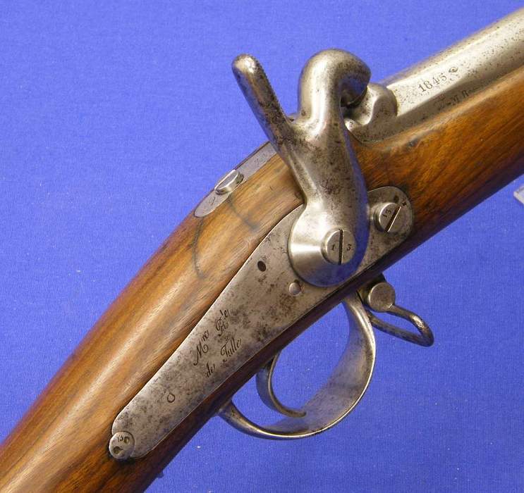 French military percussion rifle with bayonet model 1842. signed Man. Royale de Tulle in good condition