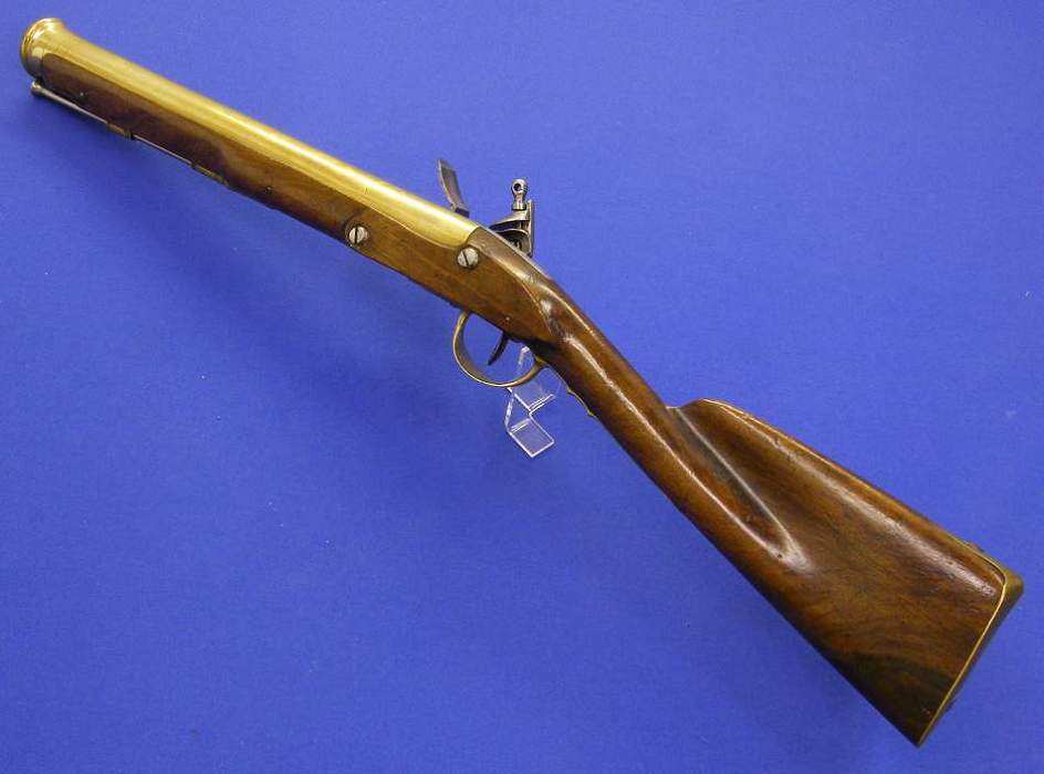 A very scarce 18th century French military pyrotechnical blunderbus from the Revolution period, lock marked AN 1 (First year of the revolution), length 80 cm, in mint condition
