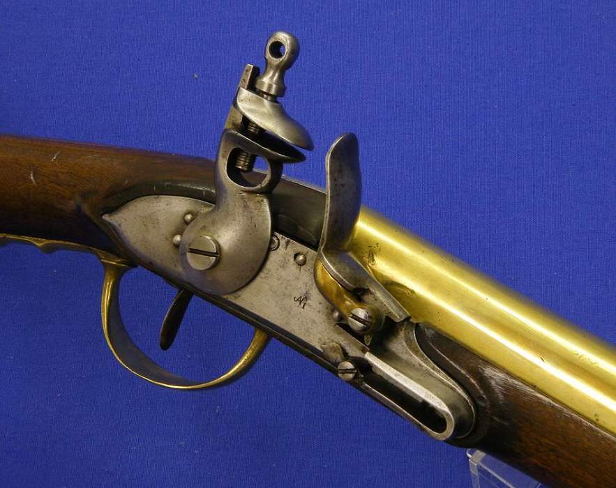 precioso fusil frances de oficial de finales del siglo XVIII, en el cañon marca GN, en la culata SABATIER, longitud 142 cm y calibre de 17 mm.