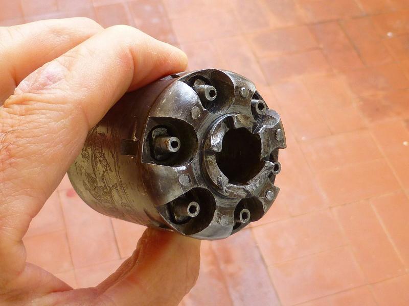 Luego hay otros detalles como la calidad de los grabados (no soy experto pero algunos parecen hechos con ácido, en el tambor, no sé si era lo habitual o no), acabados, partes más desgastadas o limadas que otras, chimeneas con agujeros desiguales, algo que no se si será un pegote de grasa o de hierro: