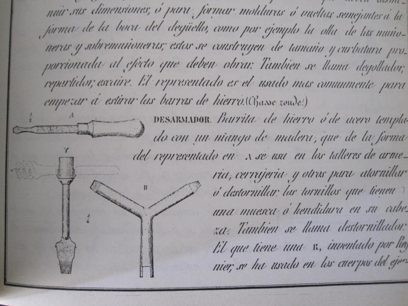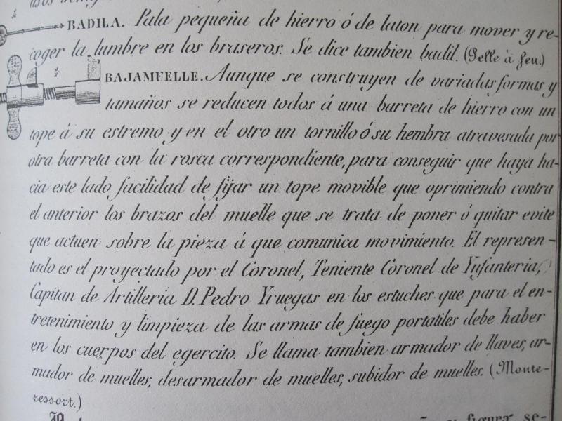 En el caso del útil para desarmar tornillos y chimeneas, curiosamente el que iba en el estuche de Iruegas era el de un solo vástago y que está señalado en el dibujo con una Y, de modo que el soldado apalancaba con la baqueta en caso de resistirse alguna rosca. En el dibujo se insinua la baqueta con el sacatrapos para aflojar tornillos rebeldes. Para aflojar la chimenea se utilizaba la ranura del labador en donde se introducía la parte plana o destornillador.