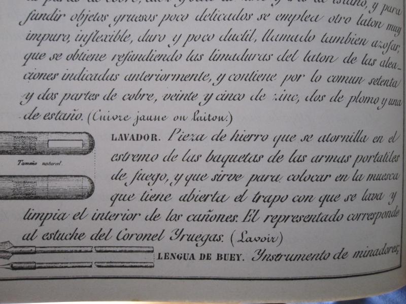 Además iban en el estuche de Iruegas: un bajamuelles, un desarmador (que nosotros diríamos una llave de chimeneas con destornillador), una aguja de fusil, el lavador, el sacabalas y el correspondiente sacatrapos. Estos últimos accesorios como digo, se atornillaban a la baqueta.