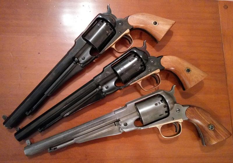 No creo que el tambor tenga un acabado electrolítico, cromo negro, por ejemplo; estoy prácticamente seguro de que es el original del arma, los tambores de Santa Bárbara tienen alguna pequeña diferencia con los Pietta, Uberti, San Marco, etc. en el tallado de la estrella de giro y éste es un Santa Bárbara seguro.