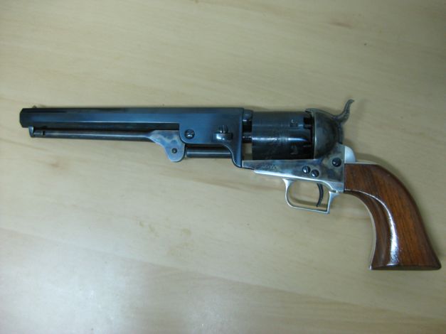 Efectivamente, es del calibre 36. Este modelo únicamente fué fabricado por Colt en calibre 36, no en 44, tanto en los Navy de primera generación,que son los propiamente originales, como en los de segunda o tercera generación. Hay réplicas italianas en el calibre 44, pero el Navy nunca se fabricó originariamente para dicho calibre.