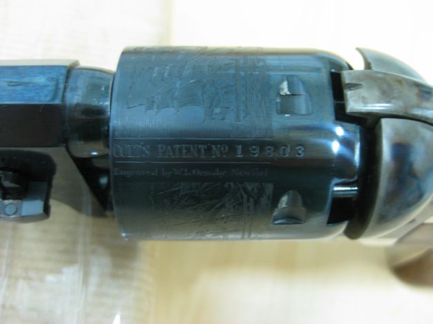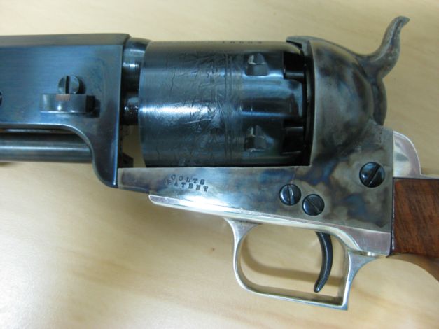 Bueno, amigos, aquí estoy de nuevo para mostraros mi nueva adquisición. Se trata del Colt Navy Second Generation que he adquirido de segunda mano, y que ya conocéis porque Paga 17 fué el primero en mostrarnos uno en este hilo. Como os digo, la marca es Colt (No réplica italiana) y a mí me encantan sus acabados, especialmente el pavonado Royal Blue. Tengo suerte porque el arma nunca ha sido disparada, si bien tiene las típicas rayaduras del cilindro por girar el tambor.