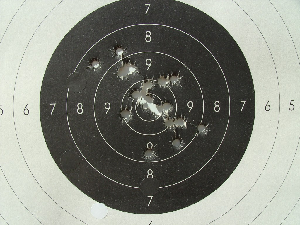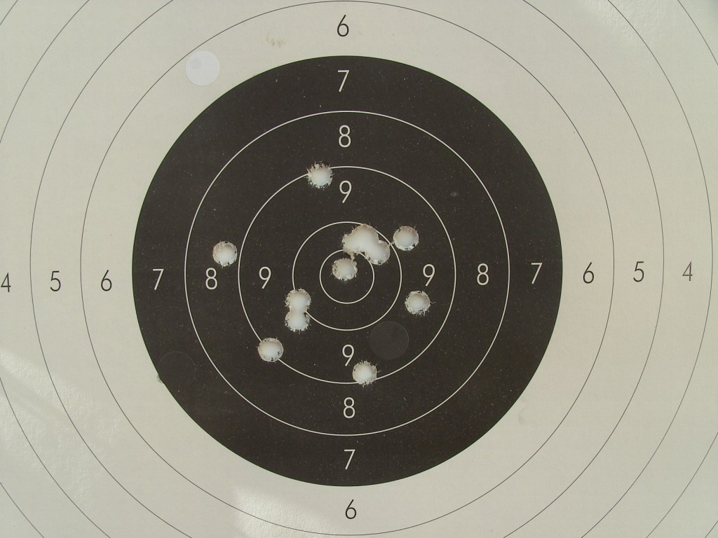 Luego la prueba de la pólvora de arcabuz con el Sharp, no ha sido definitiva ya que hay una mezcla de tiros regulares (¿cansancio?) con una buena agrupación. Insistiremos en la carga, pero dentro de quince días que como ya he dicho Cantoblanco nos espera