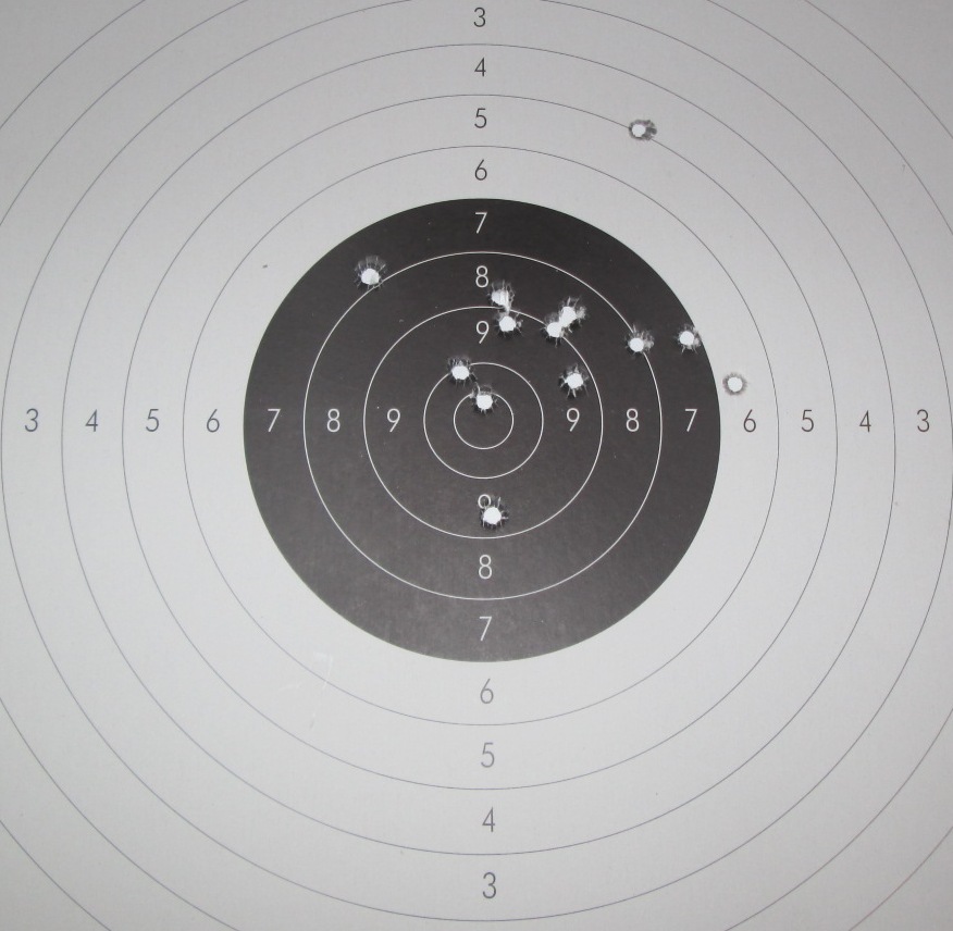En la de hoy el disparo que peor me ha salido tambien ha sido el ultimo, el ocho a la izquierda, pero lo he visto en el momento de jalar del gatillo.Me estaba acordando del ultimo de la semana pasada y queria que fuese bien y a sido el peor.