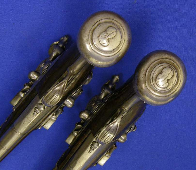 A very nice and heavy pair of double barrelled German flintlockpistols by Johann Bosselman (Elberfeld Westfalen Germany) circa 1690, length 51 cm, in very good condition