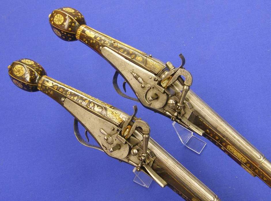pareja de totalmente identicas pistolas de rueda alemanas por Valentin Geitner de Dresden, alrededor de 1610, longitud 78-80 cm, (¿pero no era identicas?) en perfecto estado