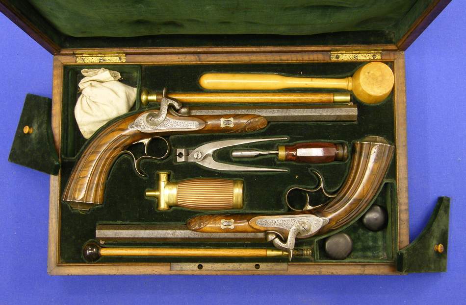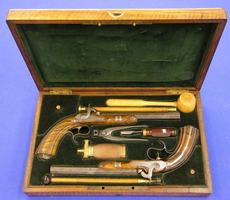 A very nice cassette with percussion pistols by Le Page - Moutier, Arqubusier du Roi a Paris, in mint condition