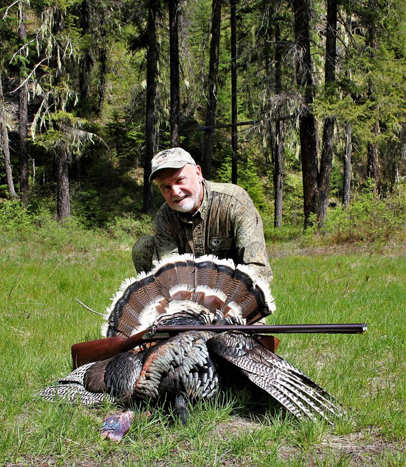 Buenas tardes, aqui dejo foto de mi amigo Toby, tras los pavos en Montana.Lo cazo con su Pedersoli del calibre 10 , uso 100grs. de negra y 60 grms. de perdigon del 5.Saludos.