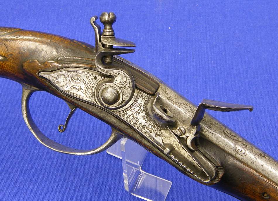 Alemán pistola de Pederneiras Bella sobre 1760, eo barril clave asinada por Le Baearnois en Dresden. Probabelmente feita para o comercio con Oriente. Lonxitude 57 cm, en moi bo estado.