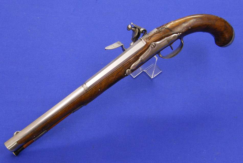 A very nice 18th century probably German Flintlockpistol, caliber 15 mm, length 50 cm, in very good condition