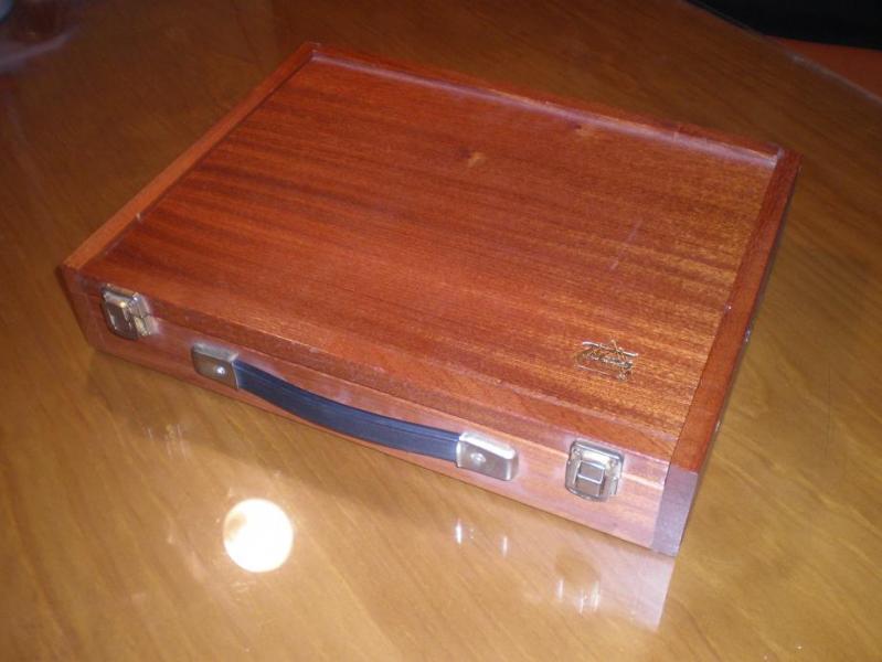 -1 maletín de los que se venden para los óleos de pintar. Tanto Carrefour, como las tiendas de chinos, como el Lidl los tienen a menudo, con la ventaja de que son baratos y que los óleos y pinceles son de tan mala calidad, que se pueden tirar a la basura sin cargo de conciencia (os lo digo yo, que pinto).